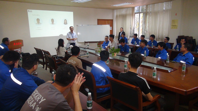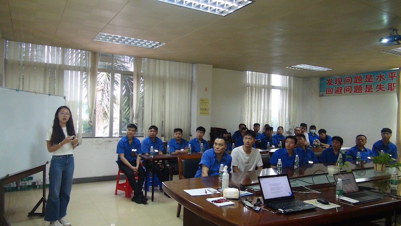 最后,由人力资源部副主任梁敏华讲授公司的管理体系活动:6S活动、设备一级维护、降成本活动、创新改善活动、标准化体系建设等,从大家身边发掘事例讲述体系活动的目的,让大家了解活动与每个人都息息相关。