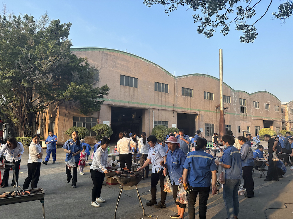 一年一度的团建烧烤活动又如火如荼地开展啦!今年的员工烧烤活动依然很受全厂员工的欢迎,11月25日下午,我司的后勤部员工阿姨早早就在为大家准备烧烤食材,人力资源部同事们也高效地帮忙打包好食材分派给每一位报名参与烧烤的员工。当日接近下午4点,夕阳下的厂区一片金黄地,员工们都很开心地团聚在烧烤指定的区域,有秩序地领取食材,在大家互相配合下开始了年度烧烤大会。