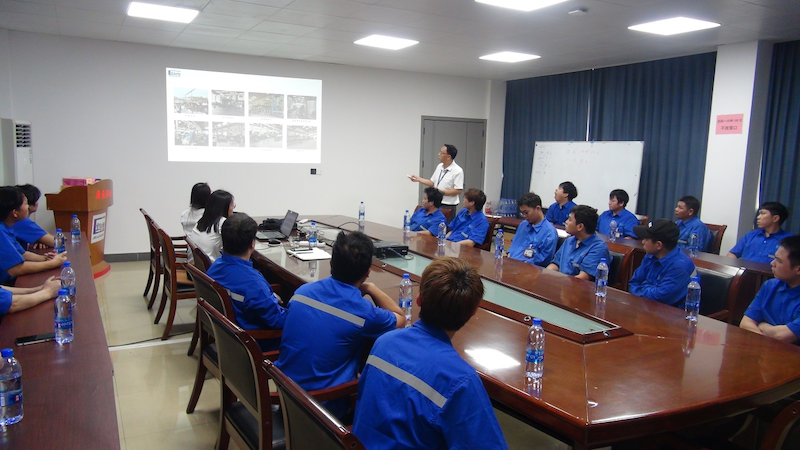 新员工企业文化培训内容分三个部分进行,第一部分是由生产本部经理兼内部讲师孔家祥为大家讲授公司概况、发展历程、组织架构、生产工艺流程和公司产品等。孔经理凭借其熟练的演讲技巧、轻松幽默的语言与大家积极互动,气氛一下子被带动起来了。