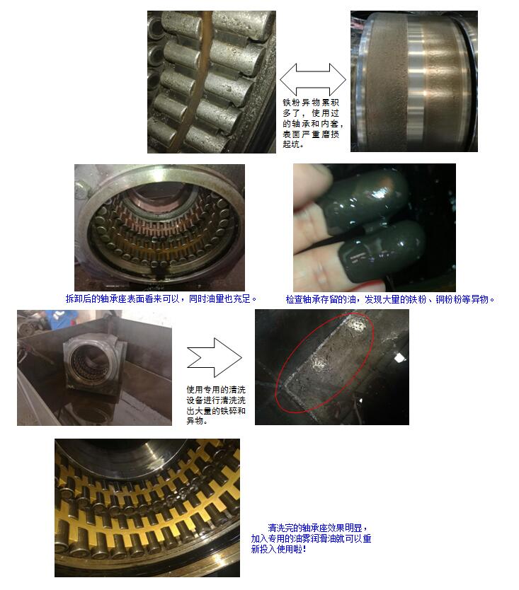 每次拆卸后的轴承座,内在会存在有很多轴承磨损的铁碎铜粉和其它的颗粒等异物,如果不把这些异物清洗干净就继续装上使用,就会导致里面的铁碎铜粉异物越来越多,严重损害轴承的表面,大大的缩短轴承的使用寿命,严重的会导致轴承的发热烧毁,造成生产效率下降,轴承成本上升,装配工作量的增加等一系列的问题出现,所以清洗轴承异物是有利于延长轴承的使用。