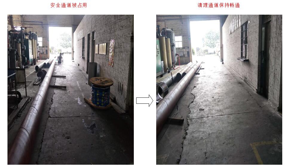 下面我们列举一个具有代表性的案例,五金仓门口的安全通道经常被大件物品占用,妨碍正常通行,存在安全隐患。检查发现后,要求立即整改,并保证通道随时畅通无阻。