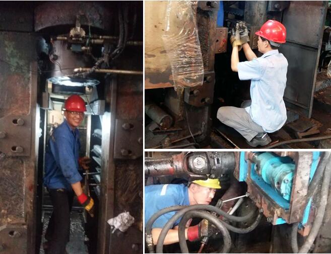 工作是生活中的一部分,要想让工作这盏灯发光发亮的话,也要不断加油,要为工作不断加油就要经常对我们的设备进行点检、维护、改造,让设备经常处于生命期,为工作不断的加油,让工作这盏灯发光发亮。今年公司根据实际情况对一期车间500可逆轧机的辊系进行改造,改造部分有支撑辊轴承座、工作辊轴承座、工作辊弯辊缸、支撑辊平衡缸、换辊装置等,改造工程量不算太大,但都是细活,我们机修车间在郝总监和大厂技术人员的指导下,经过1周的时间就改造完工并顺利投产,投产后设备运行稳定性及产能都得到很大提升,得到了生产本部领导及机台人员的肯定。按照上面所讲的我们的工作又加油啦!!!