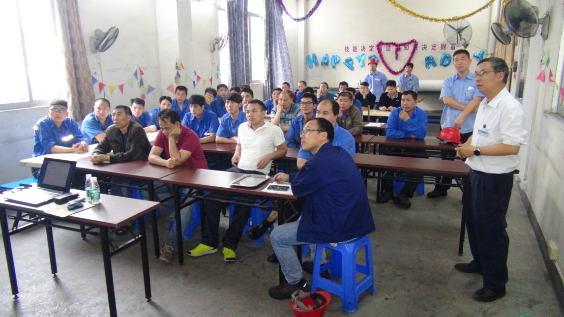 重点工序培训课上,有些刚下班的同事带着满身的疲倦,有些上夜班的同事迷蒙着睡眼,可是都尽量集中精神吸收技能知识,抓紧机会加油充实自己。