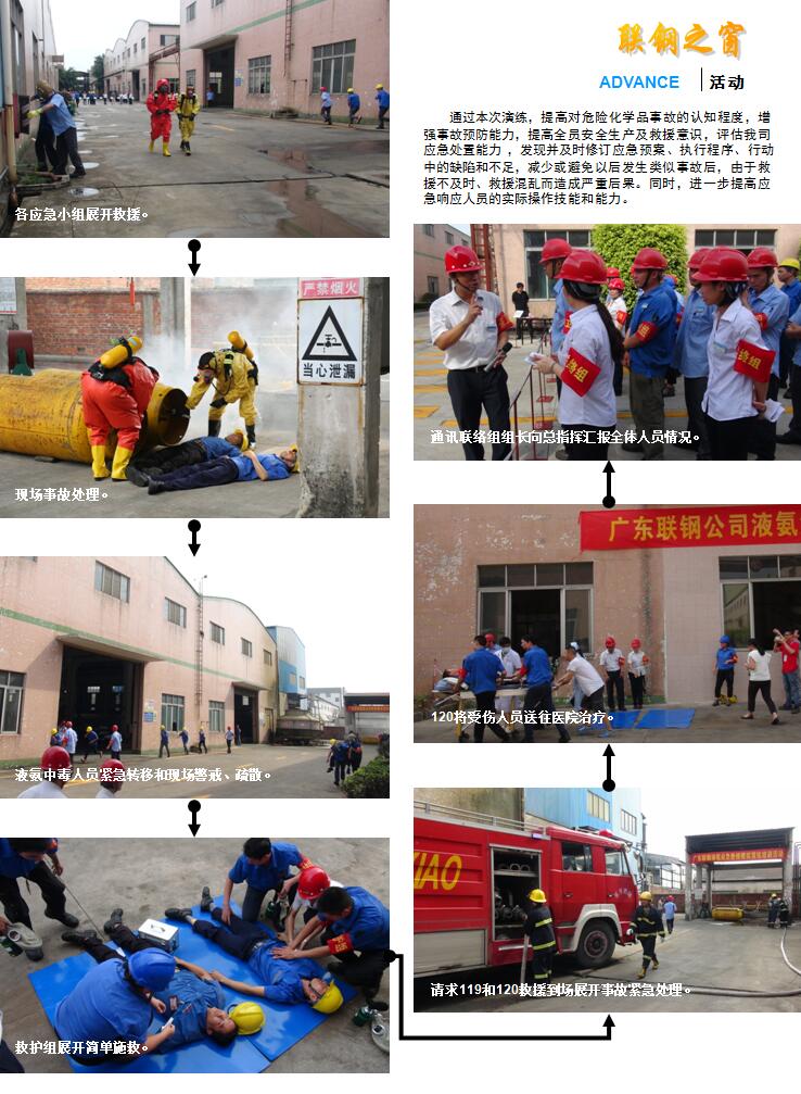 在我司液氨使用区(气氛站和三期车间区域)开展液氨泄露事故应急救援演练。区安监局乐平分局、镇应急办、镇派出所(消防)、镇环保局、镇卫计局等部门参加了联合演练,镇内