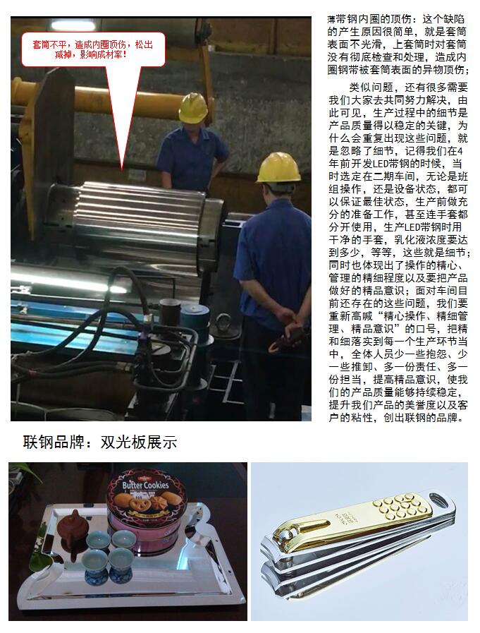 古语说,“天下难事必作于易,天下大事必作于细”,意思是说要做大事、难事必须从小事、细节做起;联钢多年来一直注重技术创新和企业内部管理,不断地进行技术改造和新产品开发,使生产能力和产品档次迅速提高,产品质量持续稳定,得到了广大客户的一致认可。现在的市场竞争是越来越激烈,稳定的产品质量无疑是立于不败之地的法宝,今年截至5月份之前,我们在生产过程中陆续发现了一些影响产品质量稳定的因素,主要有以下几个方面: