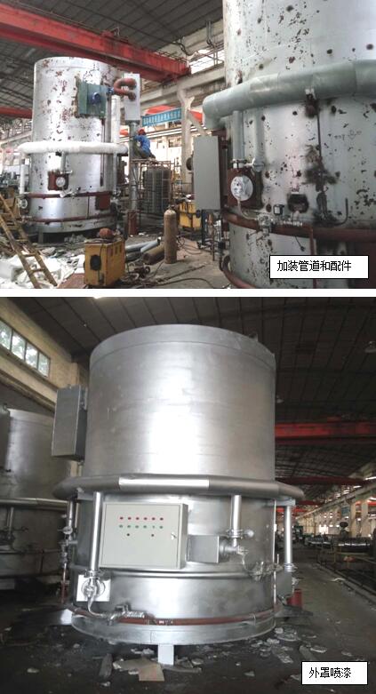 为了节能降耗与设备智能化,公司决定把17-20号电炉改造为智能化程度高的燃气炉,2017年6月28日设备改造施工人员到厂开始对17-20号炉进行改造,从清理电加热罩炉内衬——重新填装燃气用石棉内衬——加装管道和配件——外罩喷漆,历经一个月的时间加热罩主体已基本改造完成,其它辅助部分正逐步推进中,为能够圆满完成改造项目并顺利投入生产,厂家人员和本厂机电人员正全力以赴推进改造进度。