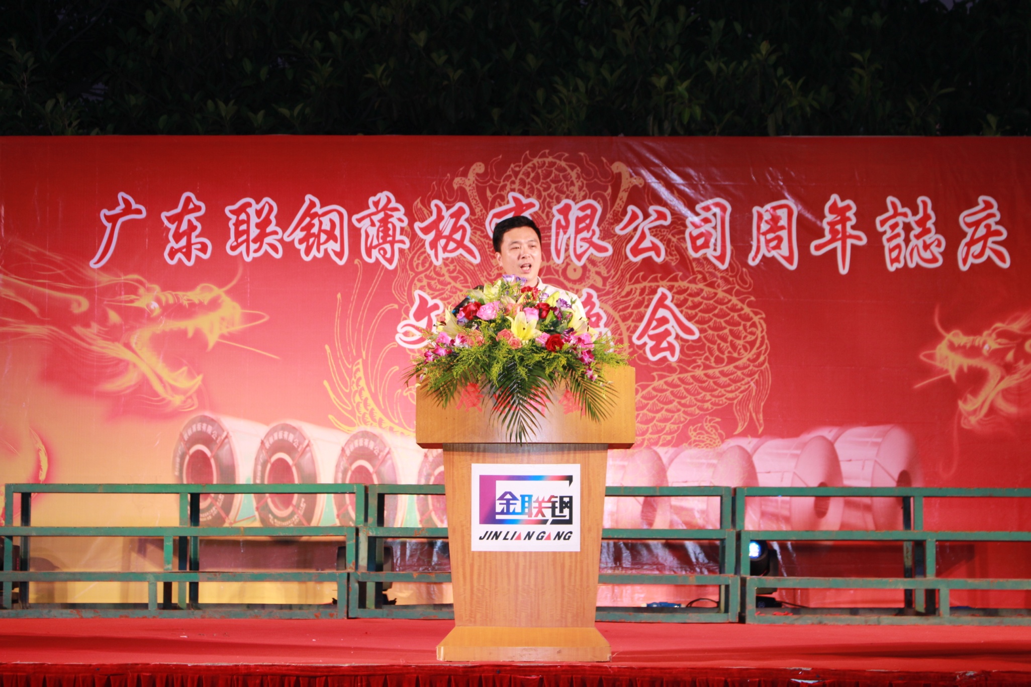 9月29日,又到了一年一度的厂庆盛典,今天是广东联钢薄板有限公司12周岁生日,祝公司生意兴隆、财源滚滚、蒸蒸日上!下图为黄劲辉总经理在厂庆晚会上致词。